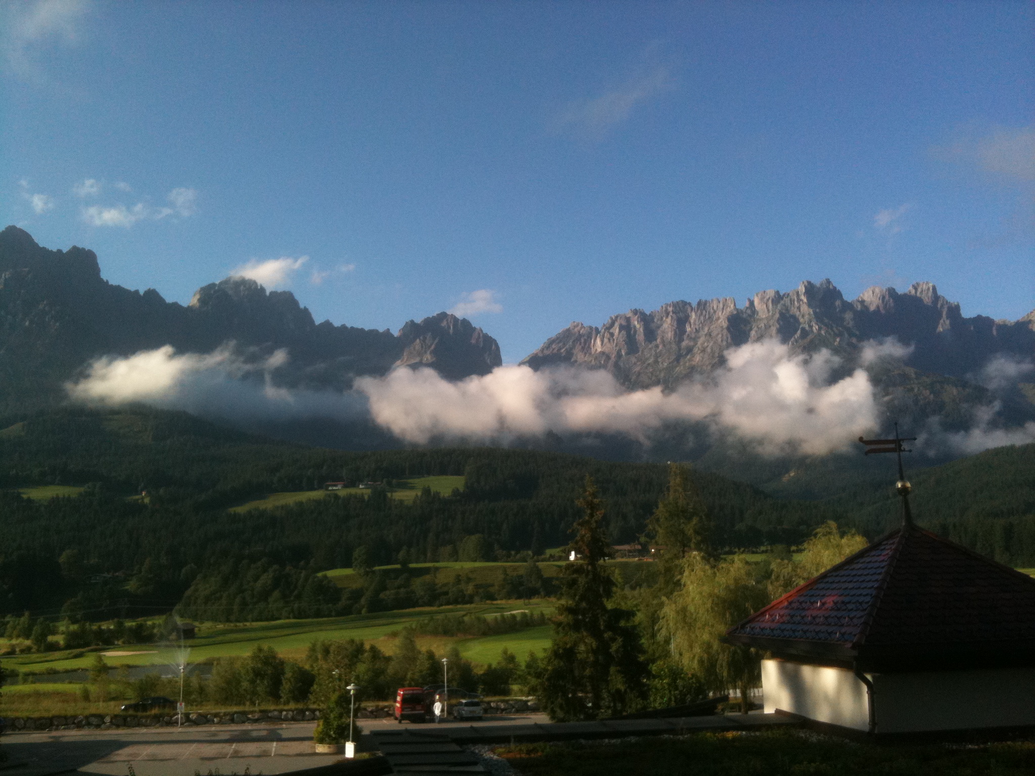 The Scenery. The Tirolean mountains are really spectacular, and the Wilder Kaiser range is no exception. Here is the view from our bedroom window